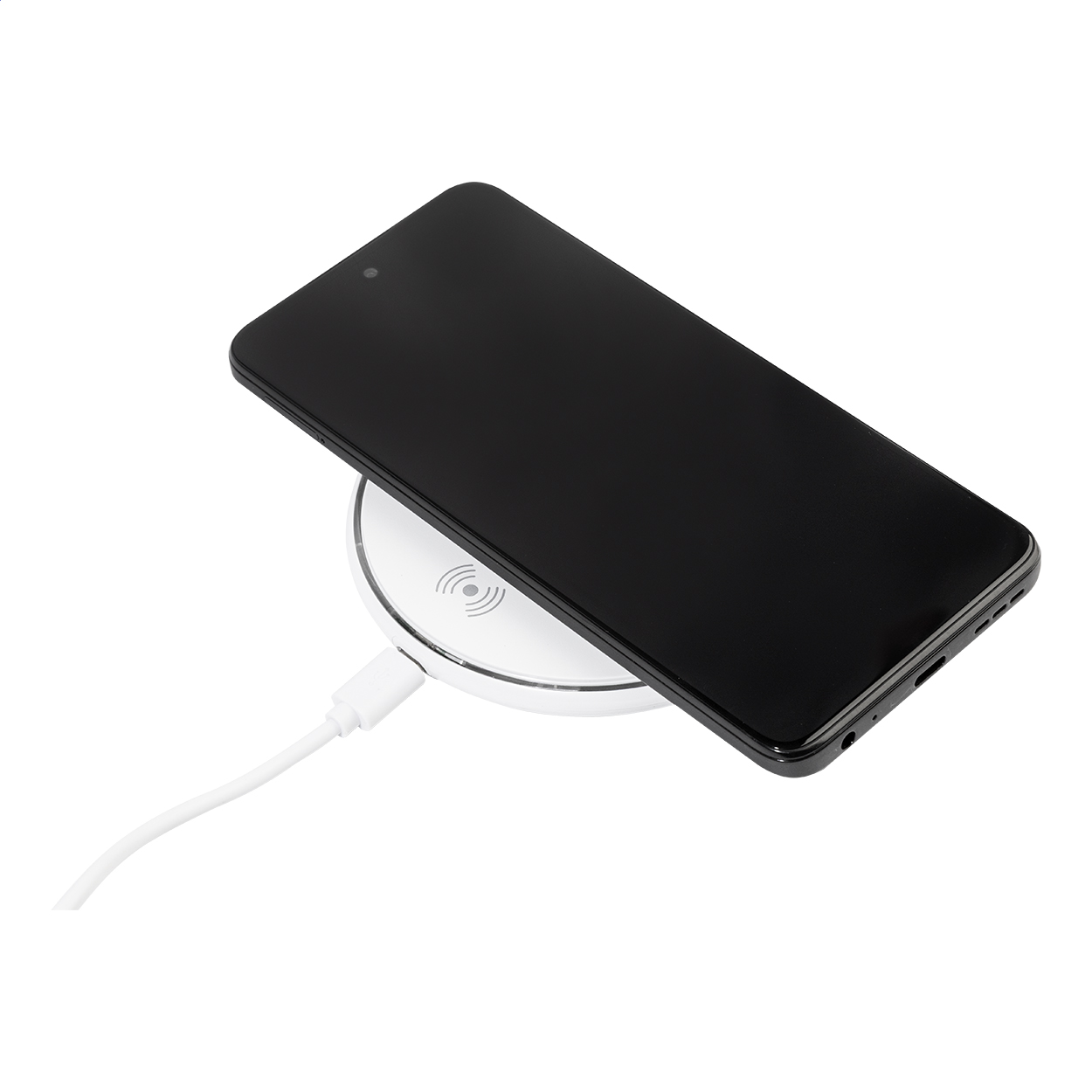 Wireless-Fast-Charger (15W) im Kunststoffgehäuse. Inkl. USB-Ladekabel.