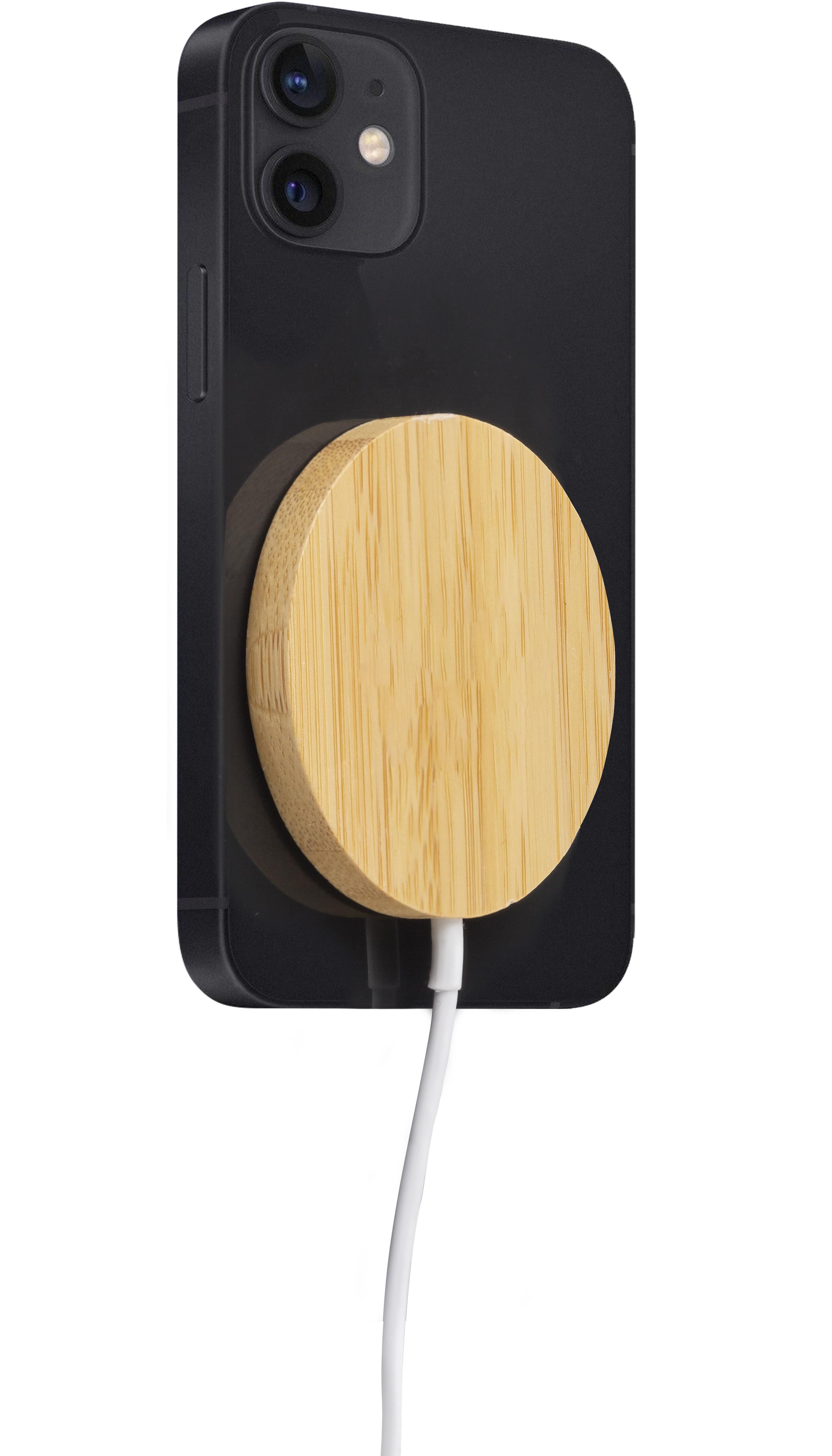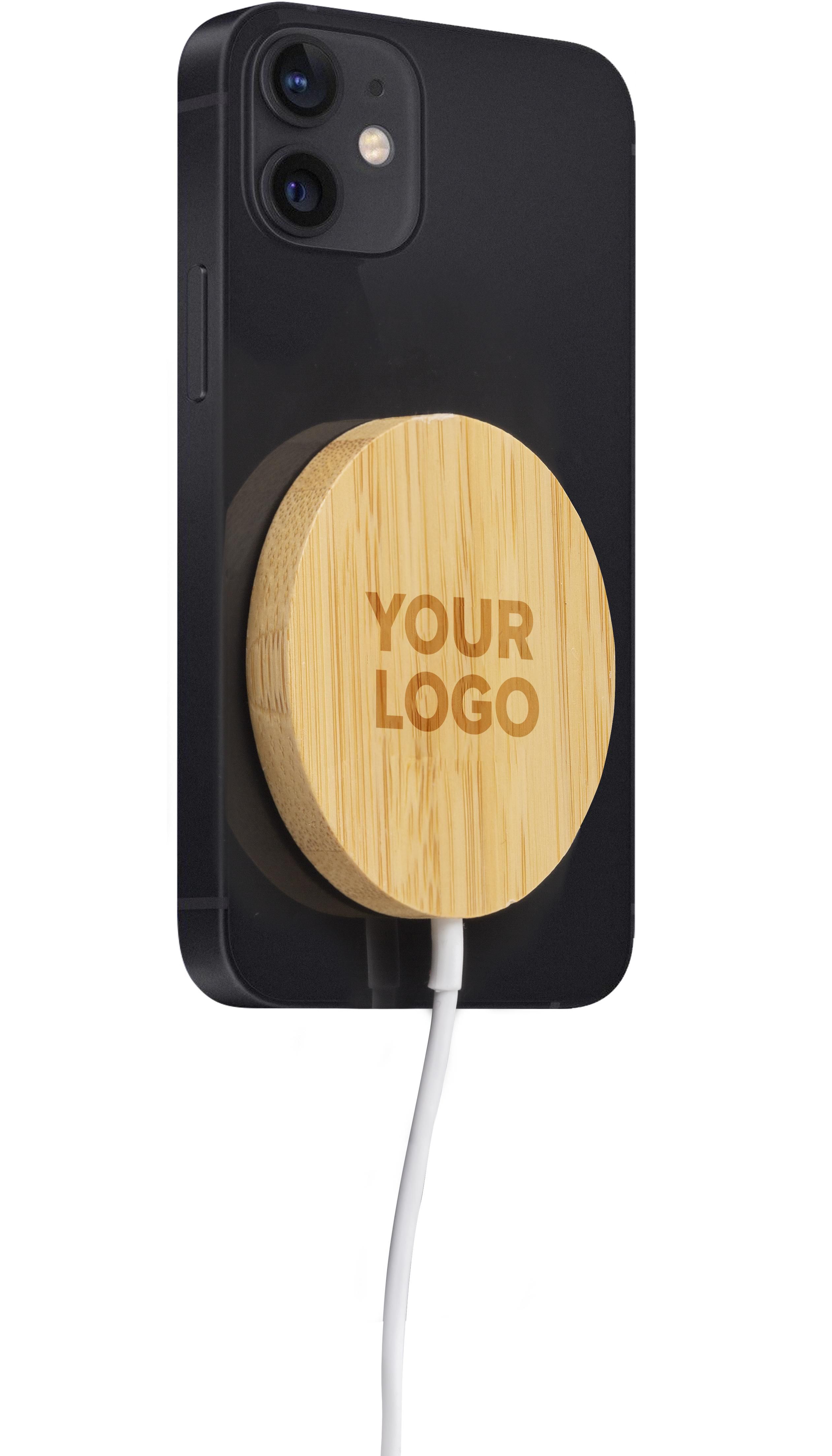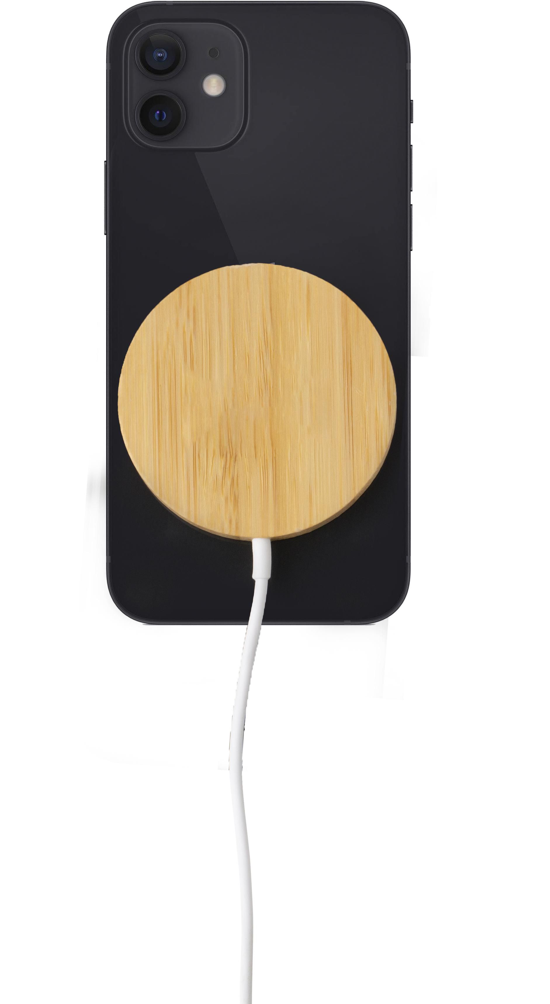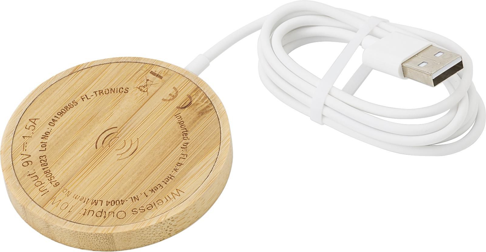Wireless-Ladegerät aus Bambus Riaz für Firmenveranstaltungen mit Logo.