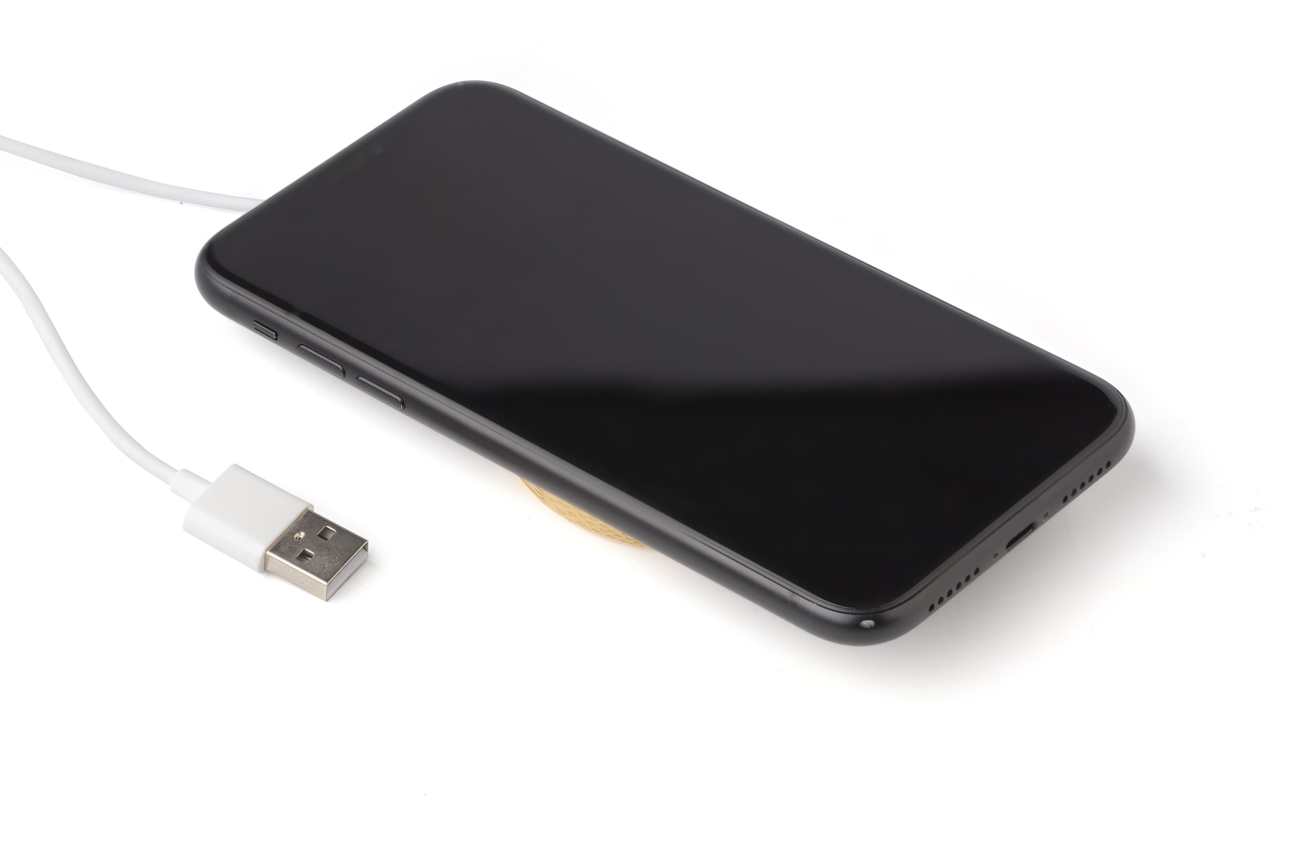 Drahtloses Ladegerät aus Bambus und TPE. Eingang 9V=1,5A. Kabellose Leistung 10 Watt. Einschließlich Kabel. Einzeln verpackt in einer Karton-box.