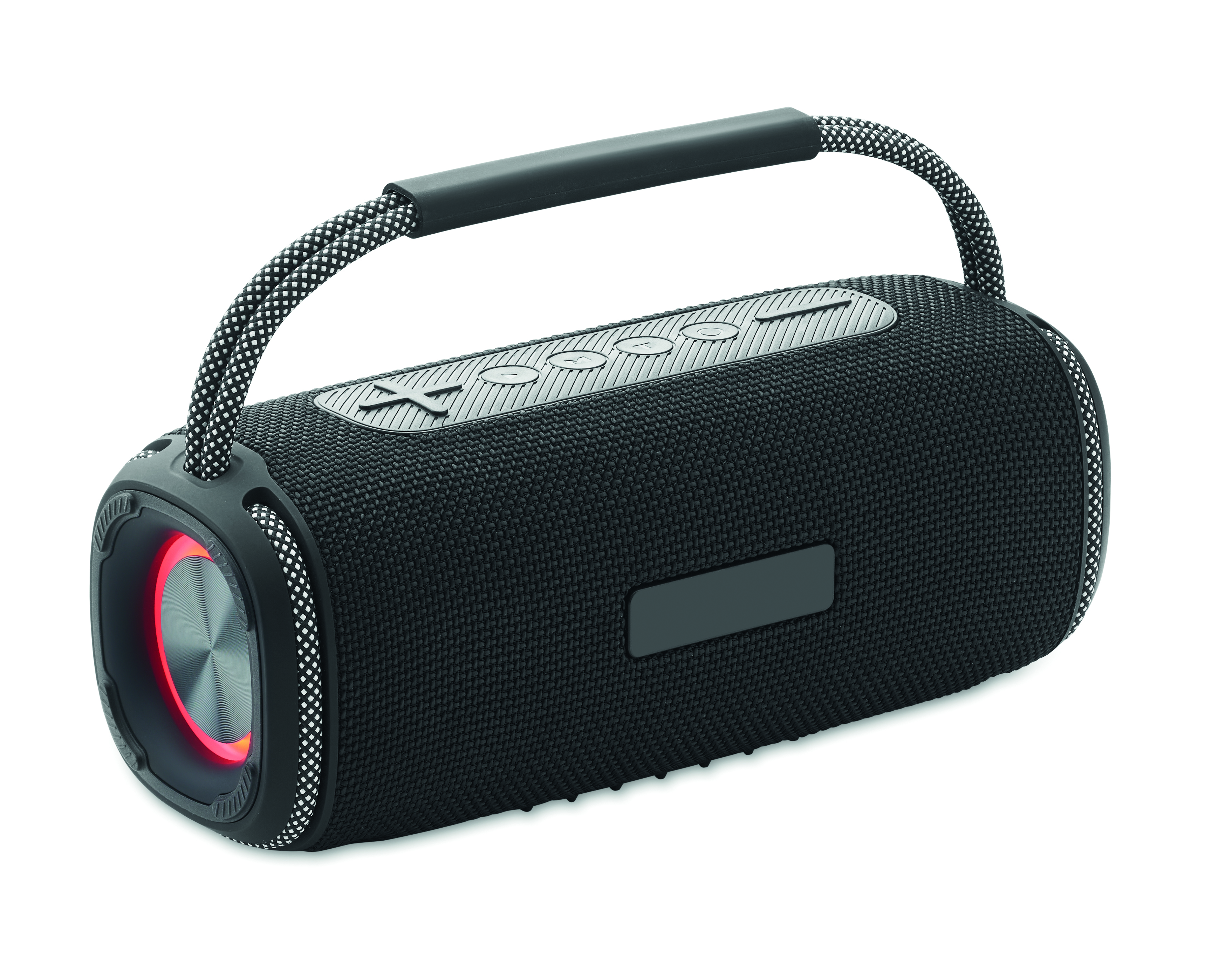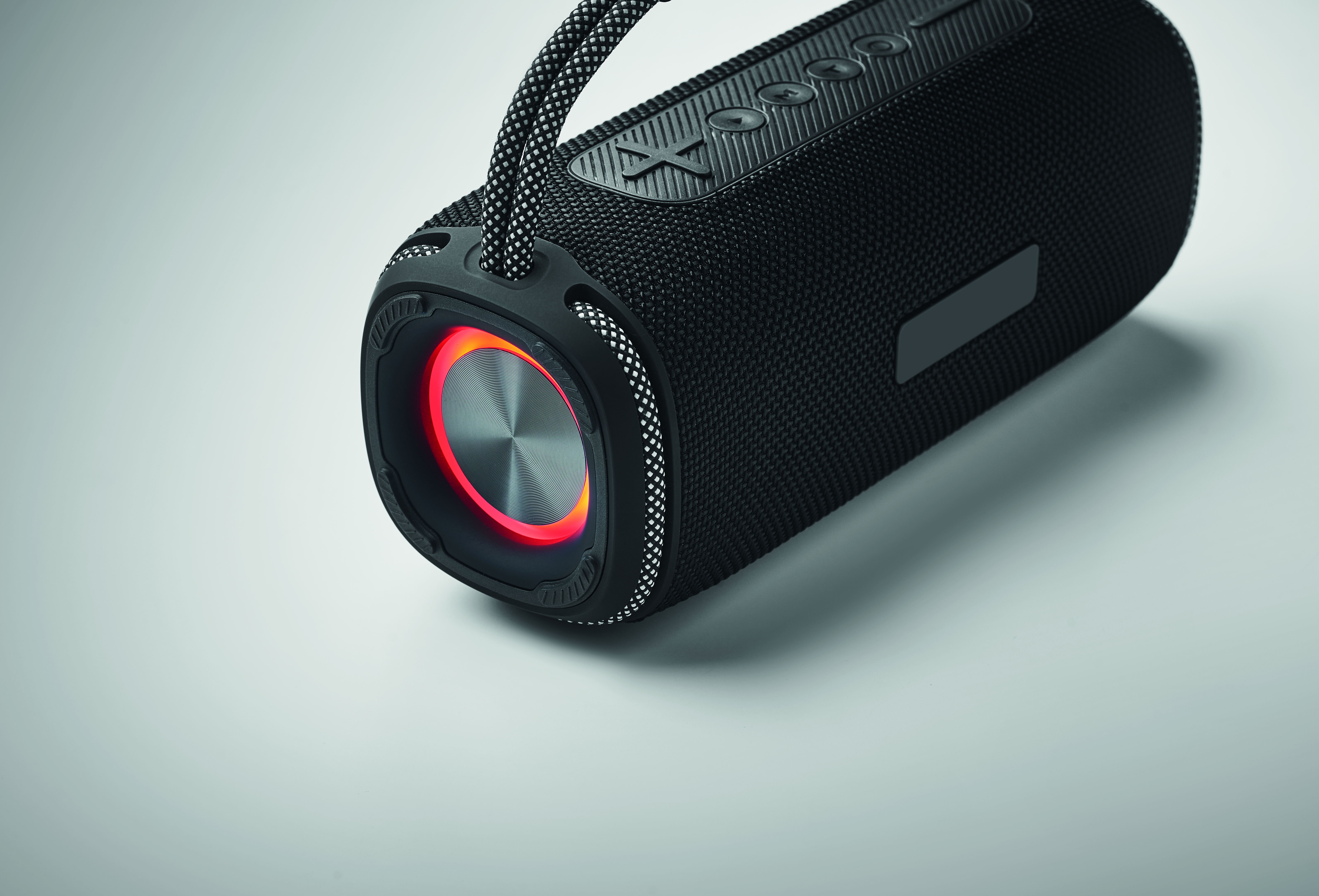 Wireless Lautsprecher (2 x 10W). Wechselndes farbiges LED-Licht an den Seiten. Inkl. wiederaufladbarem 2400 mAh-Akku. Inkl. AUX-, USB- und TF-Anschlüssen. Spielzeit ca. 5 h.