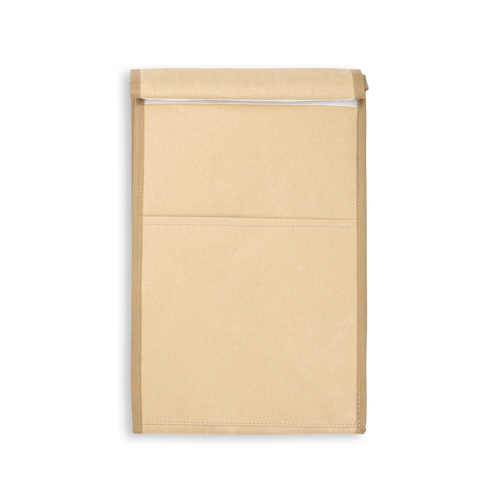 Papiertasche mit Kühlfunktion und Klettverschluss, die Lebensmittel frisch und sicher aufbewahrt. Das einzigartige Design ermöglicht einen einfachen Transport und platzsparendes Verstauen. Außenmaterial: Papier mit Non-Woven-InnenverstärkungThermoisolierung: AluminiumfolieVolumen (L): 4Fächer: 1 gepolstertes HauptfachAußenfächer: 1 Fronttasche Geschlossen: 195 x 350 x 110 mm | Offen: 195 x 410 x 110 mm